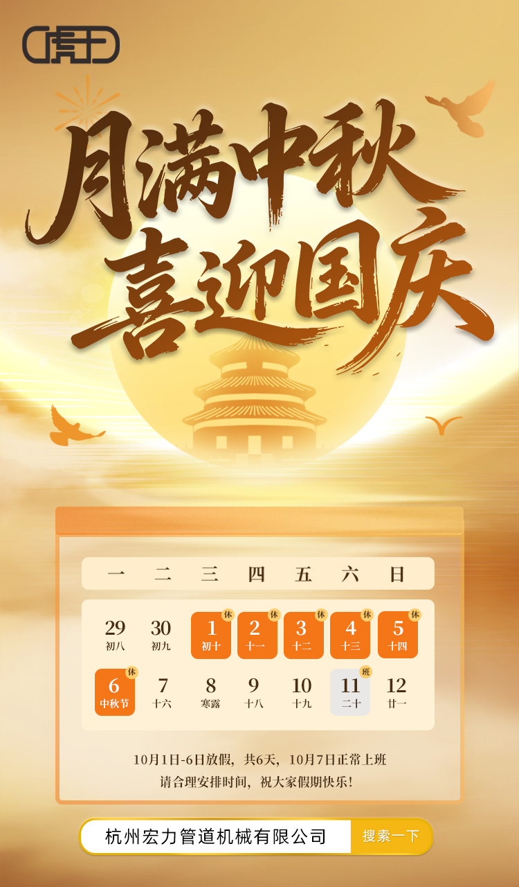 2025年杭州宏力管道机械有限公司国庆中秋双节
