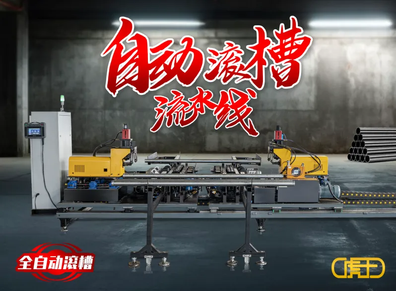 虎王新一代全自动60mm-325mm滚槽流水线可定制,上料、双头压槽、下料,全自动完成!