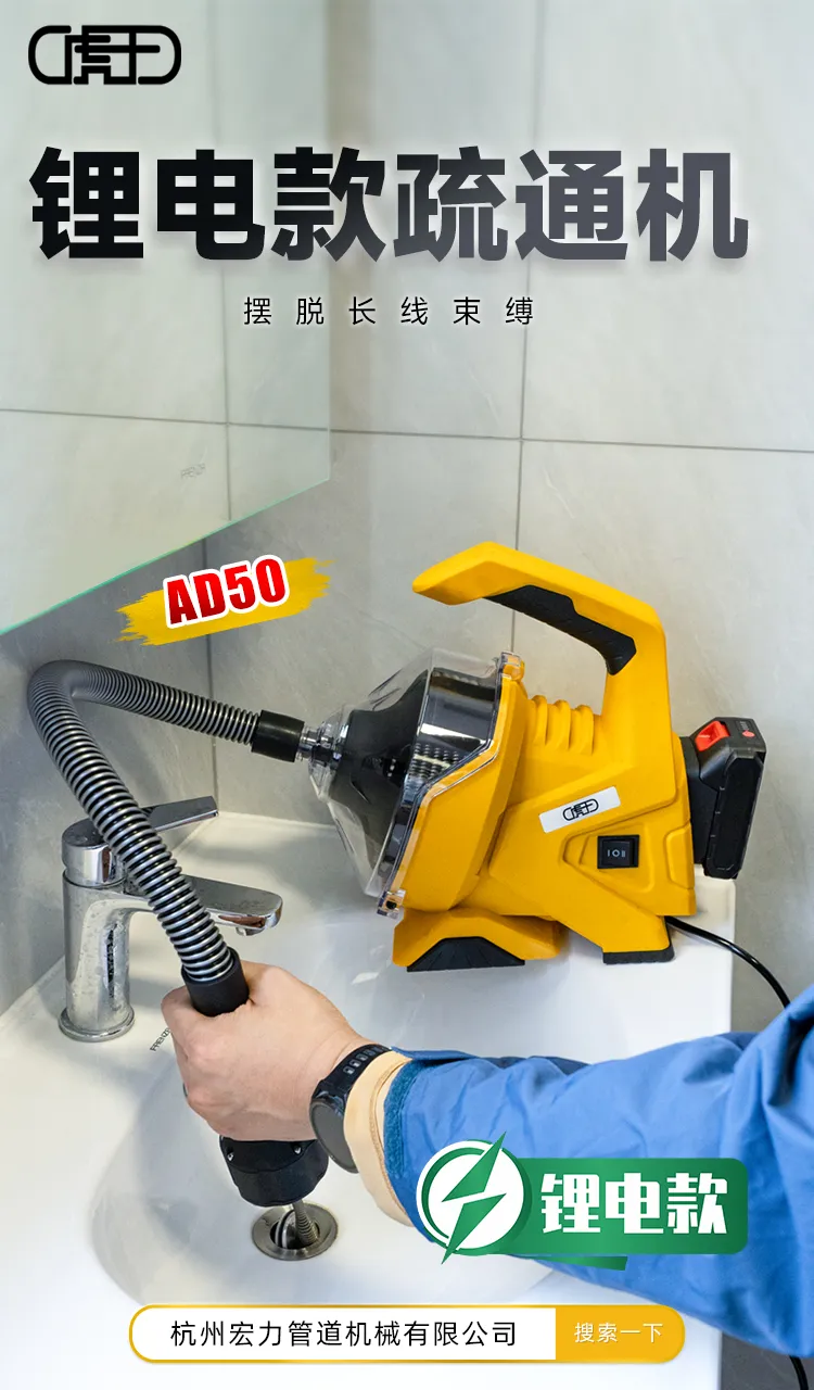 虎王锂电款疏通机AD50摆脱长线束缚,即将上市!敬请期待~
